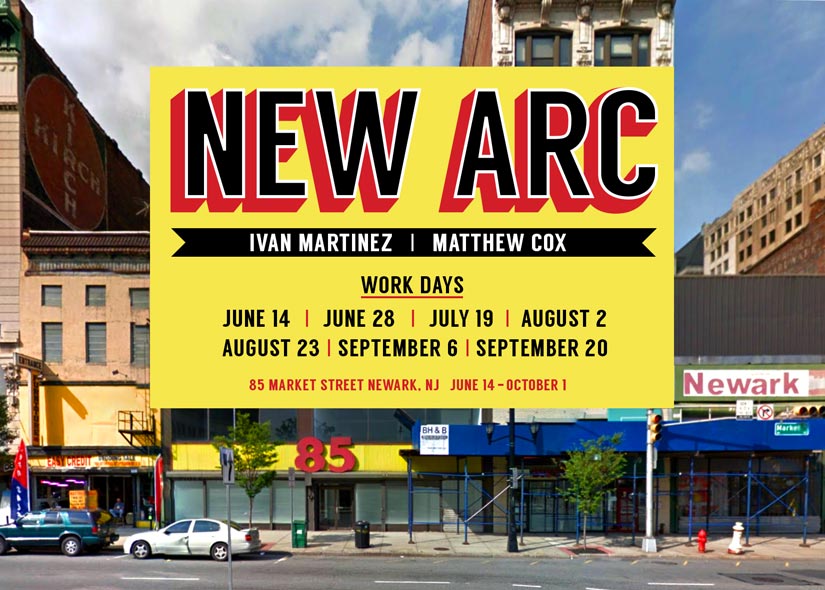 At 85 Market Street in Newark, NJ, a vacant building clings to a large sign reading “The Furniture King.” Possibly a true statement in the building’s recent past, it is now a relic of a once thriving furniture community. By turning the storefront into a working studio, Ivan Martinez and Matthew Cox intend to revitalize the abandoned space using the vernacular of furniture design to illustrate the district’s transformation. For 7 days throughout the installation of “New Arc”, Ivan and Matthew will use the storefront to turn discarded furniture into a new art object. The space will be divided into a molding, casting, finishing, and display area. Viewers will be able to see how the artists plan and execute a piece of artwork each workday. Along with the objects, Ivan and Matthew will also create a hand painted sign for each of the 7 window panels along the 2nd floor. These signs recall the traditional “sale” and “going out of business” verbiage to speak about the artist’s own personal flaws, vulnerabilities, and loss. As is common with many older neighborhoods within metropolitan areas, Market Street will continue to change. Within this inevitability, Ivan and Matthew’s installation could be seen as the consolidation of Newark’s past and future. In converting the space to resemble an assembly line, the artists are simultaneously presenting a timeline of the building’s history. The title “New Arc” comes from Newark settler Abraham Pierson’s original name for the city, “New Ark” translated from “New Work”, referencing the community’s new task at hand.