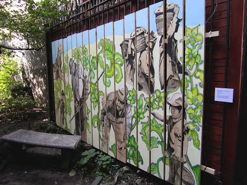 Today, it seems extremely relevant to re-stage this work, because hard-working Mexican immigrants are currently on the hot plate of the US political debate. In this new version of DeFence, Cazorla and Saleme are including a well prepared dinner table to reinforce the connection between everybody’s meals and the farmland. An association which is consigned to oblivion by many urbanites. The piece has an important educational component, especially to the young college students who pass by daily. This installation talks about gratitude and recognition for the efforts of the other. It brings to light the image of the invisible picker who feed us everyday and perhaps spreads the powerful humanistic concept of compassion.