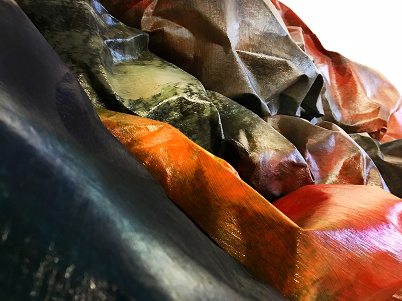 Agnes Deja is a visual artist working mainly in painting and sculpture. Deja is currently experimenting with acrylic painted and wire supported asphalt-infused paper. The artist explores both the material qualities and the process involved into expressive gestural work of creating abstract sculptural forms. While working on the surface of painting which is then destroyed and reshaped, the artist opens up to accompanying introspective reflections, especially those referring to kinesthetic memories and our perception of space. Through exploration of the tensile strength of the materials, organic line drawing with creases and folds, and building positive and negative spaces with three dimensional forms, Deja’s artistic process parallels that of our common ancestors’ nomadic journeys in the unknown and our connection to the surrounding environment.